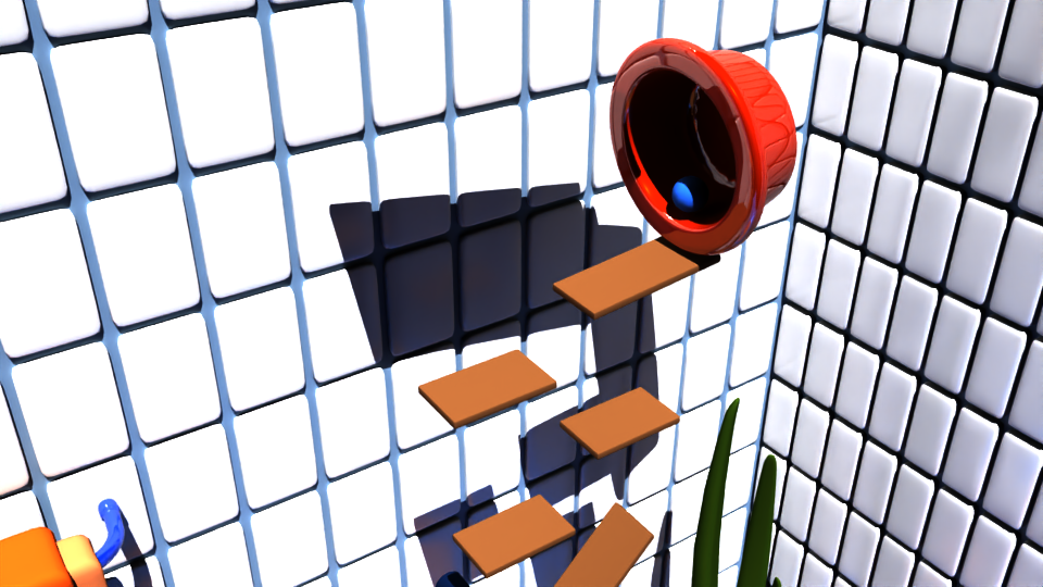 For the later half of the animation, I used staging to put the white ball and black eight ball in the same frame. I used anticipation and squash and stretch to build suspense when the white ball is getting ready to roll. I exaggerated the squishing and jumping of the black eight ball to make it seem a lot softer than the other balls. I deliberately chose to make the other balls not squish as much. I also wanted to give the black ball a little personality at the end with the way it turns around and looks back at the camera.